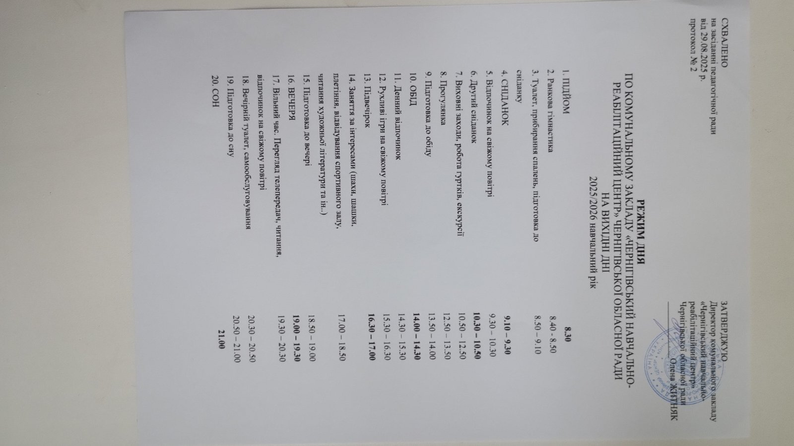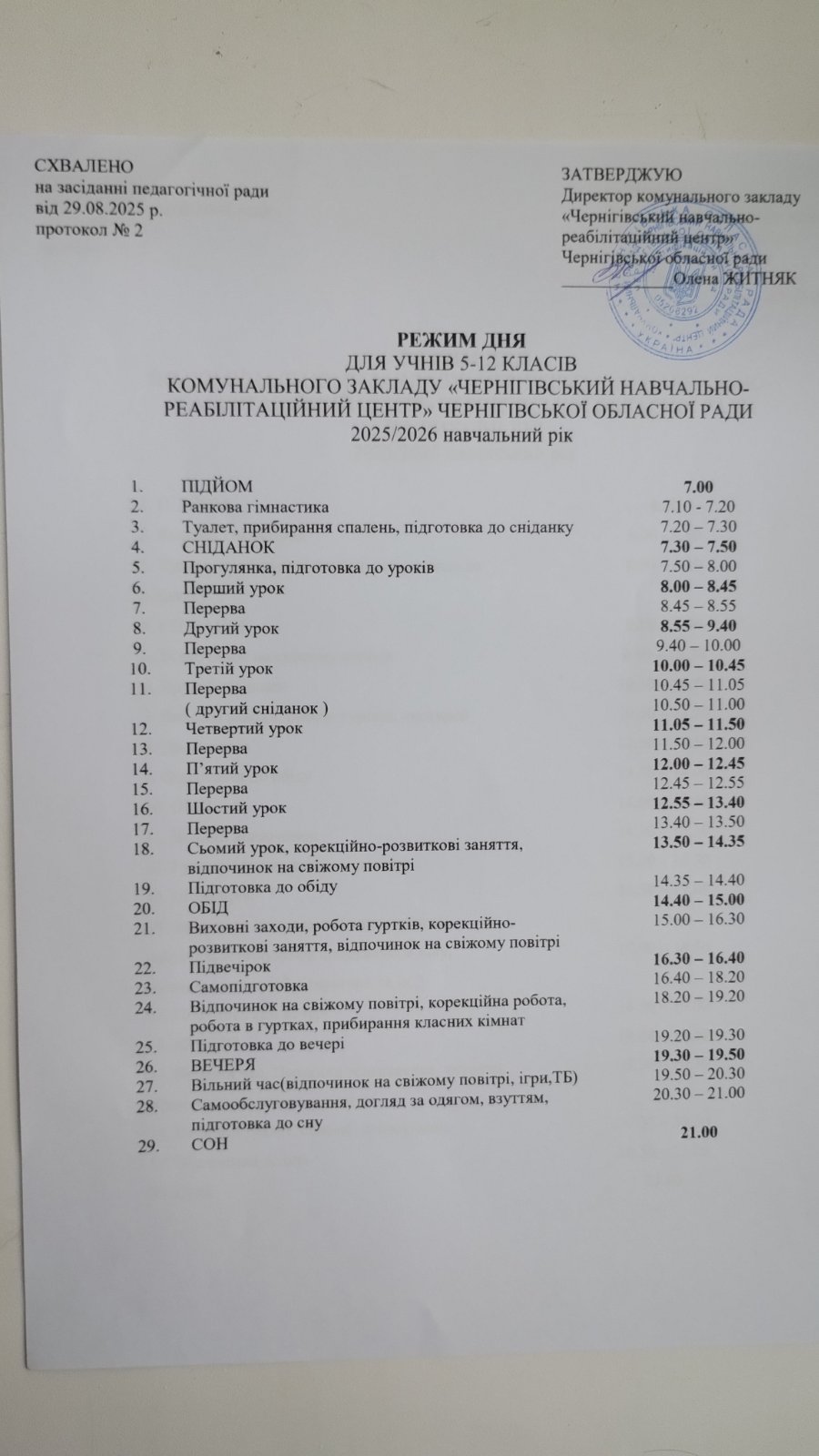 Режим дня для учнів 5-12 класів